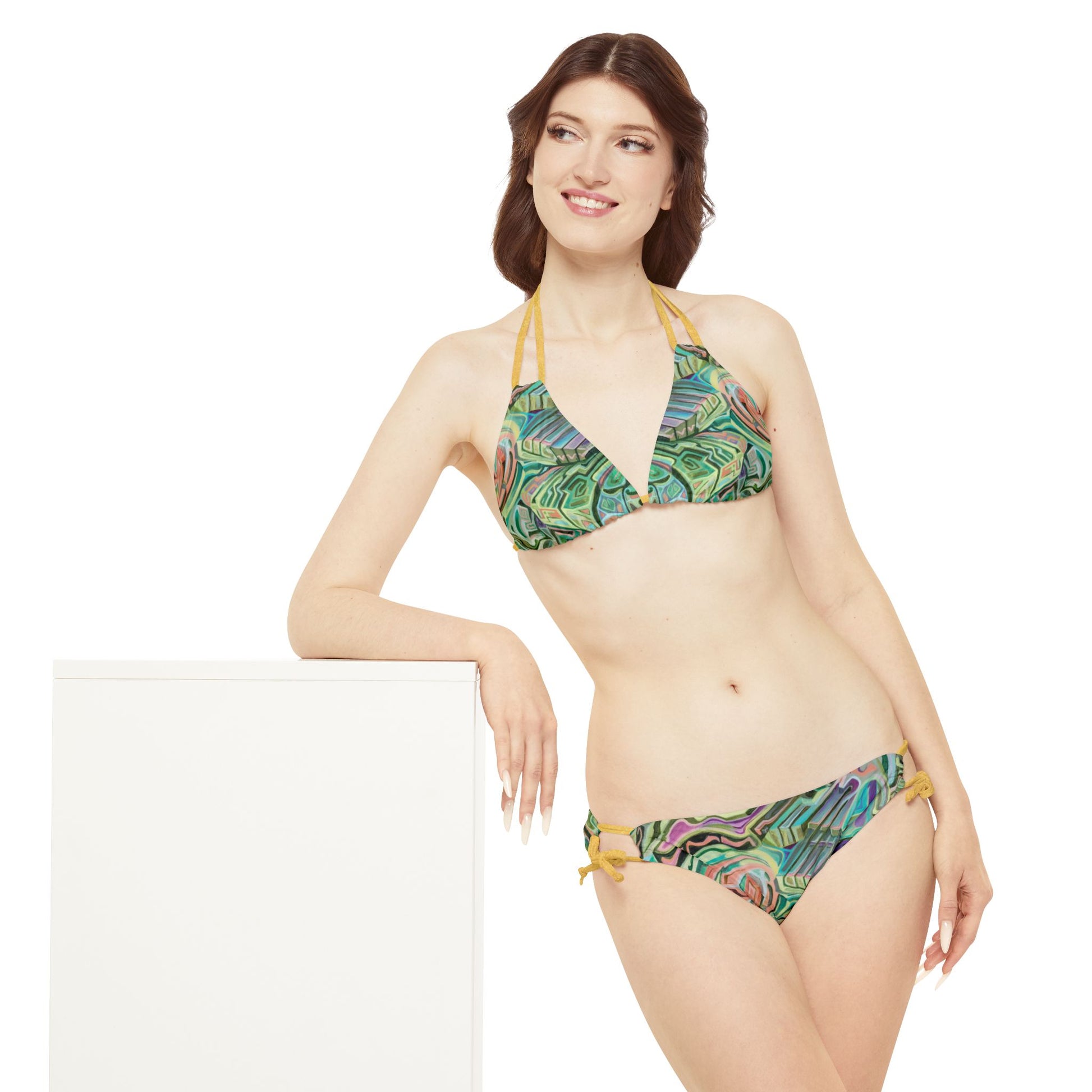 Made with 4-way stretch Tricot (82% Microfiber, 18% Spandex), this strappy bikini set is the perfect companion to all summer escapades. With adjustable elastic straps for a perfect fit, this complete two-piece swimsuit needs your custom art to become an instant summer hit.