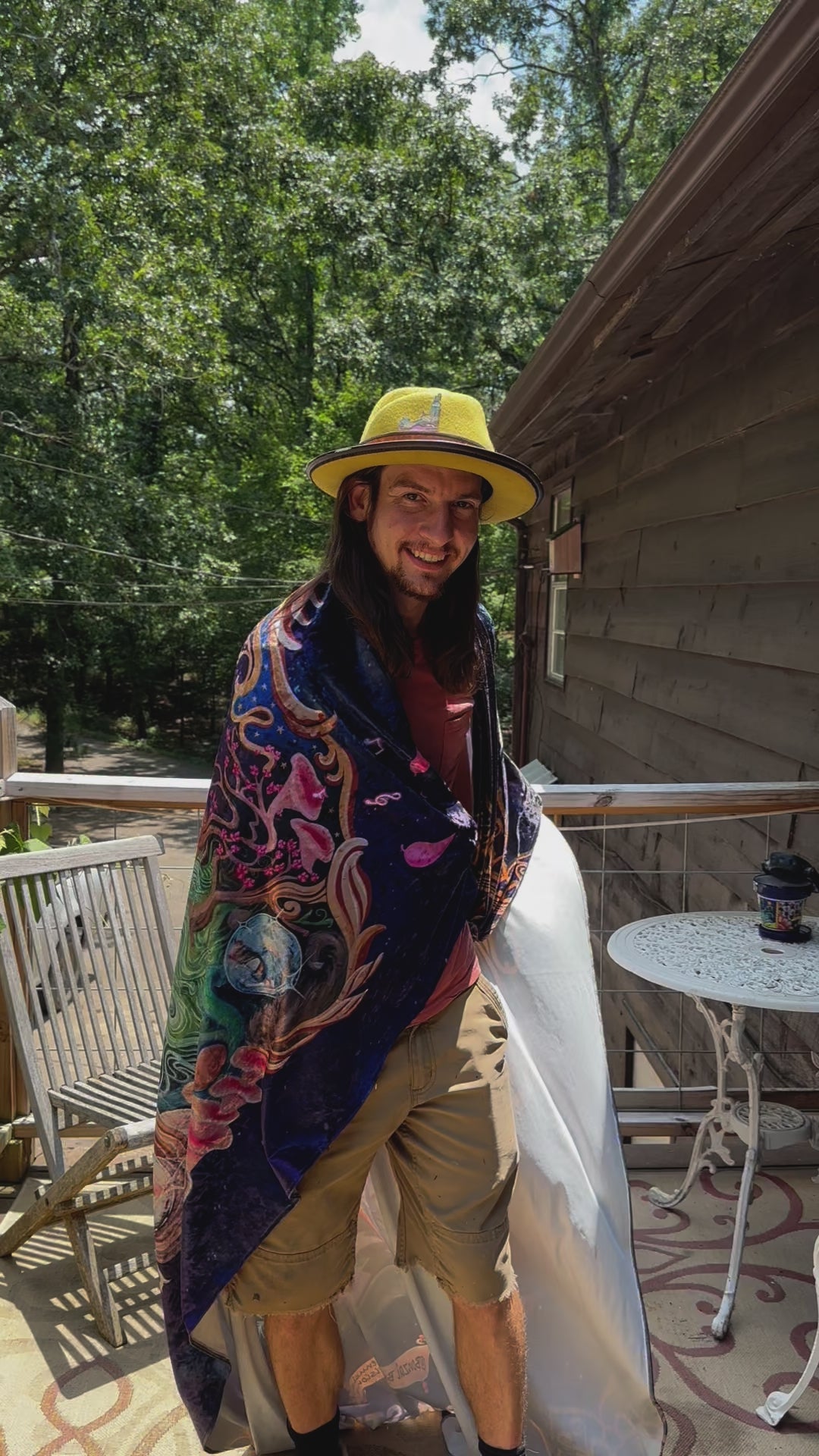 Luxurious Crushed velvet tapestry featuring the painting When We Reconnect. These can also be used as throw blankets.